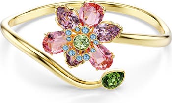 Faceted crystal petals catch the light on this stunning bracelet boasting a trending bypass design and a gorgeous flower that remains in bloom season after season.