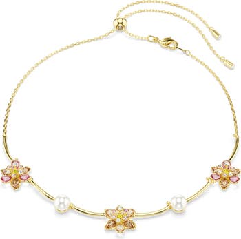 Swarovski Idyllia Crystal Flower & Faux Pearl Collar Necklace, Main, color, Gold/ Multi