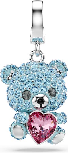 Add a playful touch to your favorite chain with this sweet teddy bear charm decorated in glittering crystals and with a heart-shaped accent.