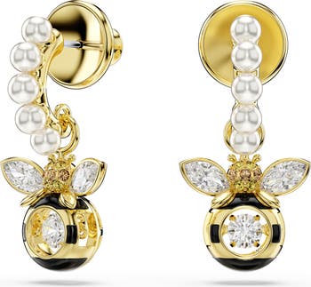 Bring the beauty of nature to your look with these exquisite faux-pearl earrings featuring sparkling bee drops adorned with glittering crystals and gilded accents.
