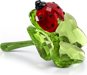 This stunning design showcases a delicate ladybug atop a crystallized clover rendered in naturalistic colors. It makes a lovely gift with 315 stunning facets that reflect incoming light beautifully.