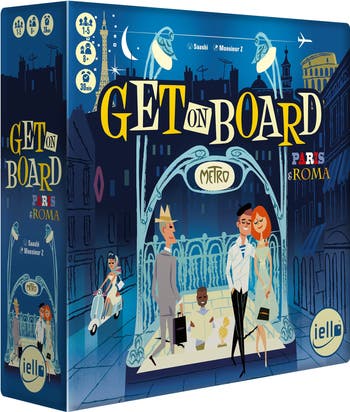GET ON BOARD: PARIS & ROME - As night falls on the city and street lamps begin to glow, travelers are already dreaming of their evening plans… Bye bye work, time to hop on the metro! Underground, metro cars shake and stations pass by in a blur. Evening is upon us: should we go to a concert or a restaurant? Minds wander, soaking up the romantic mood in the cities of love, as everyone makes their connections. Who knows where this journey will take us? Get on Board is a Flip and write game where players will try to create the best Metro Line in Paris and Rome to bring lovers, grandmas and others to their favorite destinations. An accessible and fun "turn & tick" game that allows you to discover two new emblematic cities! Offers players the opportunity to create a city layout, optimized according to sections of road imposed on everyone. The metro line thus drawn must be consistent: there are objectives to accomplish, crossing points to respect, and passengers to transport! As soon as your metro line crosses a symbol on the central board, you check the corresponding box on your score sheet. It's as intuitive as it is precise. The object of the game is to have the metro line that will allow you to score the most points, that is, by transporting passengers where they want. TRANSPORT as many passengers as possible - VISIT the best locations - CREATE connections - MAKE the best metro line! OVERVIEW: Flip & Write Game. Players: 1-5 (solo variant included). Playing Time: 30 minutes. Ages: 8+.