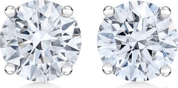 A timeless jewelry essential, these white diamonds studs will bring unparalleled sparkle to your ears. These elegant lab grown diamond stud earrings feature a 4-prong basket setting in a glistening 14k white gold metal. The 2 round, brilliant lab-grown diamonds radiate a beautiful white sparkle as they float within the four-prong setting of these 10k white gold stud earrings. Each lab-grown diamond is crafted to the highest standards and has a VVS2-VS1 clarity grade making them essentially flawless to the naked eye. The studs include dazzling round-cut lab grown diamonds with a total weight of 0.50 carat and come with a push back clasp for a secure and comfortable fit.