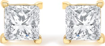 IGI Certified 14k Yellow Gold 1/2 Cttw Princess Solitaire Diamond Stud Earrings
