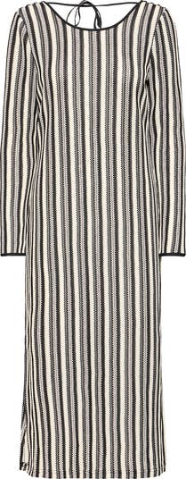 Airy open stitching adds breathable charm to this maxi covered in lively stripes and tethered with a dainty back tie.