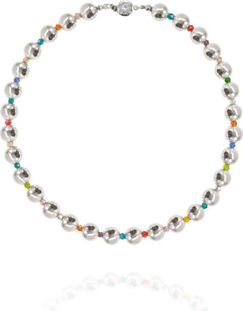 Say hello to the Ilka Necklace, a candy-colored strand that looks sweet enough to eat. | Crafted from heavy hematite beads in metallic gold, speckled with vibrant rainbow beads throughout. | Ilka can match any shade under the sun or bring bold personality to a neutral ensemble. | Materials: Hematite Beads, Glass Beads, 18K Gold-plated Brass Hardware | Length: 16.5” | Weight: 3 oz |