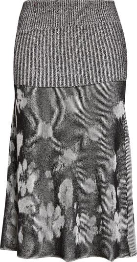 Illusion Floral Jacquard Rib Sweater Skirt
