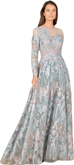 Illusion Neck, Long Sleeve Ballgown