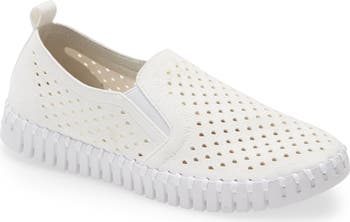 Decorative perforations create breezy comfort in this flexible slip-on sneaker that keeps you grounded on cushioned support.