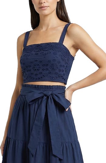 Ilyssa Eyelet Embroidered Square Neck Smocked Crop Top