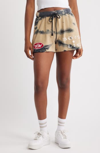 Love to lounge in these tie-dye sweat shorts crafted from a supersoft cotton blend and finished with a distressed logo graphic.