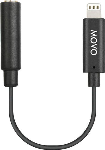 Features Specifications Lightning connector 3.5mm jack Optimized for microphones/pro audio Input: 3.5mm Female TRRS (4-Pole) Jack Output: MFi Certified Lightning Connector Cable Length: 5.5" (14cm)
