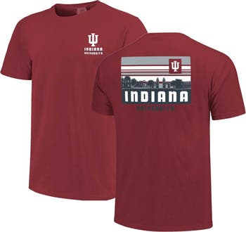Show off your Indiana Hoosiers pride with this stylish Striped Campus Skyline T-Shirt. This comfortable cotton tee features the school logo and wordmark on the left chest for a touch of Indiana Hoosiers pride. Across the back, a silhouette of the campus is set against a striped design, creating a unique and eye-catching look.