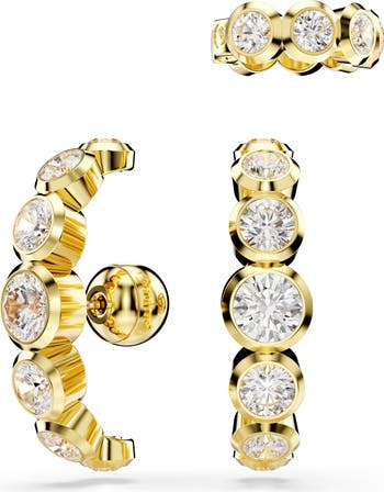 Bezel-set round Swarovski crystals bring luminous sparkle to this elegant set including two curvy lobe-hugging studs and a matching ear cuff.