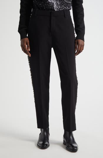 Claim your place among the stars in Olivier Rousteing's Balmain universe with these flat-front pants crafted from breathable cotton. Highlighted by intricate constellation embroidery at the sides, they sparkle with glossy imitation pearls and radiant crystals for an out-of-this-world look.