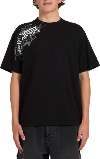 Scribbled graffiti graphics stamp the brand's distinctive signature on this T-shirt cut from soft, breathable cotton that feels cool and comfortable all day.