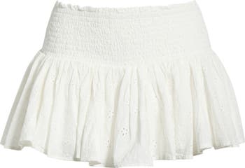 Sweet smocking enhances the comfort and shape of this bubbly leggy-length skort accented with airy eyelets.