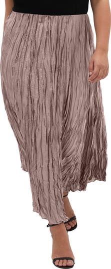 Slim pleats bring airy texture to this crinkled midi skirt that elegantly sways with every step you take.