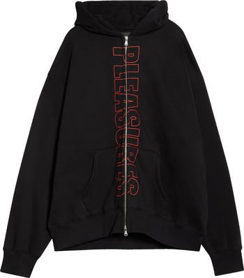 Designed to wear your mood loud and clear, this zip-front hoodie places an oversized logo down the center while soft cotton-enriched fabric and dropped shoulders set a relaxed tone.