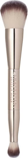 What it does: Designed to work effortlessly with liquid and cream products, this brush glides with cloud-like softness to blend foundation, concealer, blush and more. The dual-ended design allows for allover application and precise detailing. The larger end blends foundation seamlessly for smooth, even coverage. The smaller end perfects contours and targets hard-to-reach areas. Both ends are tapered to hug the curves and angles of the face. The ultra-plush, dense synthetic fibers blend and build for a seamless, airbrushed finish without shedding. The luxe golden handle provides comfortable grip and control.