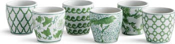A classic chinoiserie in shades of green & white. How refreshing! The color green is known to have a harmonizing, balancing effect, and is an inspired design choice for the coordinating mini pots. A welcome addition, bringing stability and calm to the well-appointed kitchen, study or covered porch.