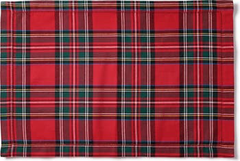 Elevate your table setting with this set of four festive placemats in a colorful plaid.