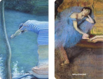 Inspired by the expressive, rule-breaking style of Impressionist artists, this set of two notebooks are wrapped with waves of flowing color on their covers and are the perfect place to explore your own impressions. The covers represent the artworks "Deux danseuses au repos" by Edgar Degas and "Le Nageur" by Gustave Caillebotte.