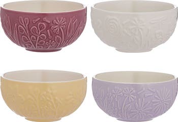 In the Meadow Mini Prep Bowls, Set of 4 Floral Stoneware Bowls