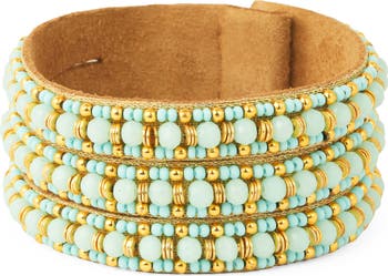 Variegated rows of faceted beads in a mix of textures bring eye-catching color and shine to this wide bracelet secured with a magnetic closure.