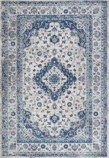 A classic medallion design gets a cottage makeover in warm oranges. The ornate pattern features a central medallion and border, with vines and flowers in an updated palette of orange and white. Mingled threads create a slightly distressed look. Add a traditional touch to your living room, family room, bedroom, dining room, or home office with this durable, family-friendly rug.