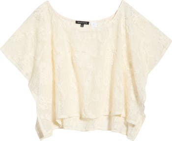 A wide boat neck frames this openwork knit poncho designed with floral motifs and a loose, flowy drape through the body.