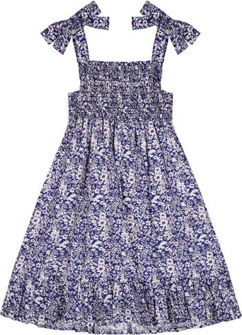 With its smocked bodice and playful shoulder ties, this dress is perfect for soaking up the sun. The full twirl-worthy skirt and ruffle hem add a touch of fun and femininity to this must-have summer piece. 100% cotton. Â