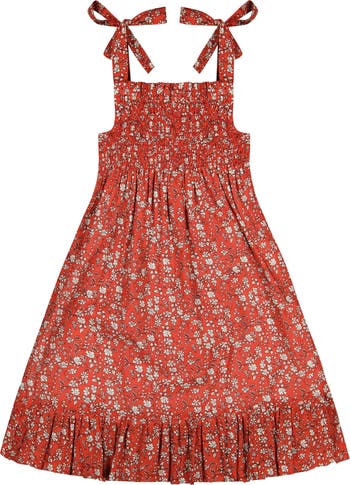 With its smocked bodice and playful shoulder ties, this dress is perfect for soaking up the sun. The full twirl-worthy skirt and ruffle hem add a touch of fun and femininity to this must-have summer piece. 100% cotton. Â