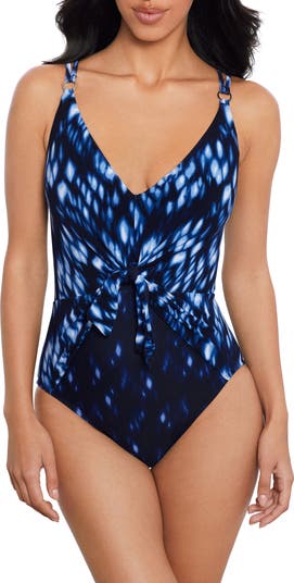 Front ties cinch your silhouette in this one-piece swimsuit that's perfect for your next pool day with figure-shaping compression.