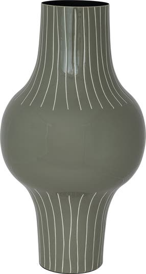Bring effortless sophistication to any space with this Enameled Metal Organic Striped Vase. Designed with a smooth grey finish and sculptural striped detailing, it seamlessly complements Farmhouse, Boho, Modern, Scandinavian, and Transitional interiors. Whether used to showcase floral arrangements or as a standalone decorative accent, its durable metal construction ensures both longevity and visual appeal. The enameled surface provides a refined glossy sheen, making it an elegant addition to indoor and outdoor environments. Measuring 8.5 inches in diameter and 16.25 inches in height, this vase blends contemporary artistry with timeless versatility.