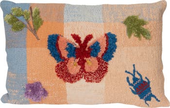 Indoor/Outdoor Woven Fabric Pillow with Tufting, Embroidery, and Insects, Multicolor