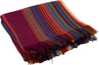 Indoor/Outdoor Woven Fabric Throw with Stripes and Fringe, Multicolor