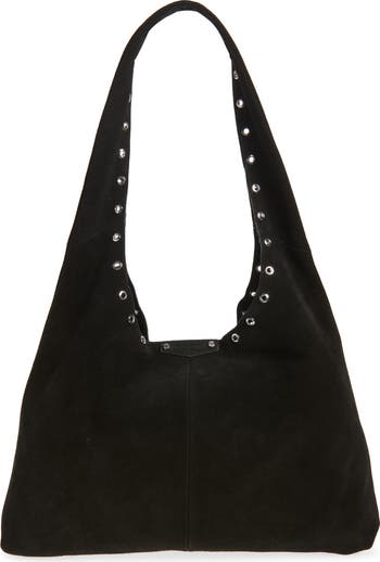 Gilded rivets and rugged suede add casual edge to a slouchy hobo bag you'll reach for on repeat.
