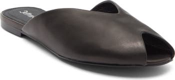 A peep toe silhouette adds retro vibes to a simple slide sandal you'll wear all season.