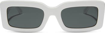 Sleek rectangular frames define these stylish sunglasses fitted with scratch-resistant CR-39 lenses.