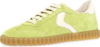 A curving contrast panel brings the brand's signature touch to a low-top sneaker shaped from soft suede with a ridged rubber sole for sporty stability.