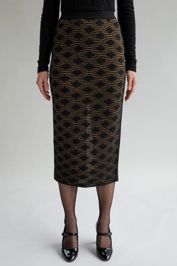 The slim-fitting Ines pencil skirt is knitted in a subtle monochromatic pattern, providing texture and interest. Designed with a front slit but is meant to be worn back to front and vice versa. For a complete "make-a-statement" effect, you can style it with the matching Amelie Polo.