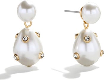 Faux pearls illuminate the posts and drops of these elegant earrings topped with crystals to amplify their exquisite shine.
