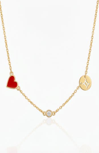 Inez Red Heart Necklace with Diamond & Zodiac Sign