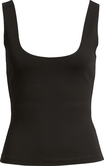 This deeply scooped knit tank works well as a low-profile first layer or a sassy solo player.