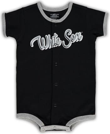 Your little one is ready to play any position with this charming Chicago White Sox romper. This Power Hitter piece features a clean Chicago White Sox design and contrast-color trim for an adorable getup. The full-button front allows for a quick and easy game day outfit.