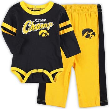 Infant Black/Gold Iowa Hawkeyes Little Kicker Long Sleeve Bodysuit and Sweatpants Set