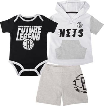 Infant Black/White/Gray Brooklyn Nets Bank Shot Bodysuit, Hoodie T-Shirt & Shorts Set