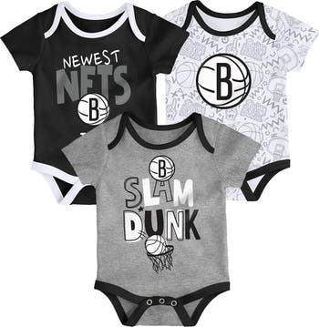 Infant Black/White/Gray Brooklyn Nets Slam Dunk 3-Piece Bodysuit Set