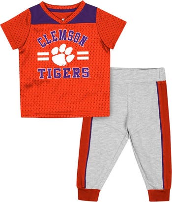 Get your little one into the Clemson Tigers fandom by adding this striking Colosseum Ka-Boot-It Jersey & Pants set. Both pieces feature vibrant team colors and bold Clemson Tigers graphics to elevate their blossoming pride in the squad. The mesh jersey offers breathability while the pants' adjustable waistband gives them the perfect fit.